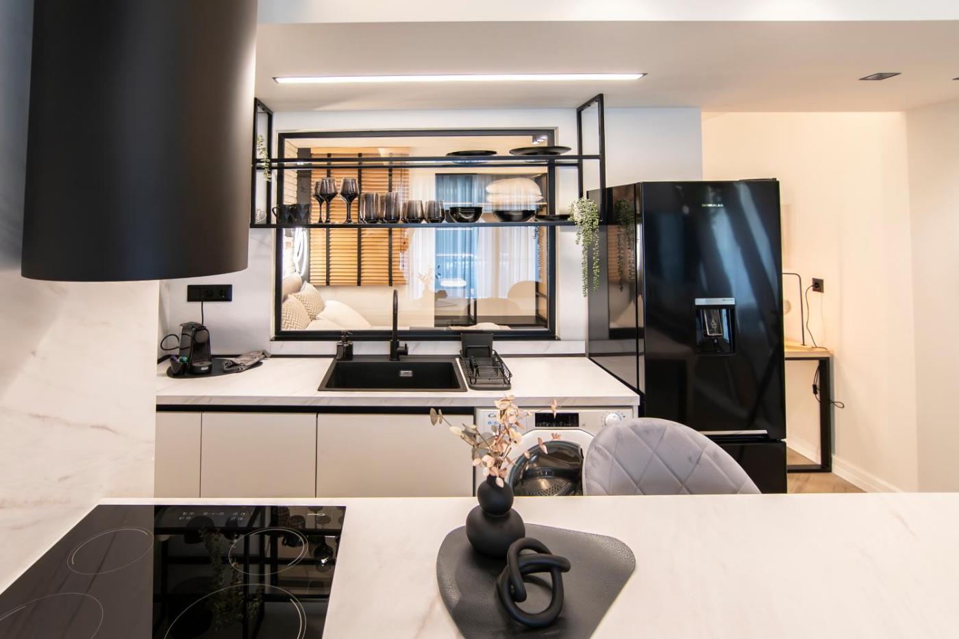 One-Bedroom Apartment. The well-equipped kitchen has a stovetop, a refrigerator, kitchenware and an oven. This air-conditioned apartment comes with a dining area, a flat-screen TV with streaming services a washing machine and a terrace. ;