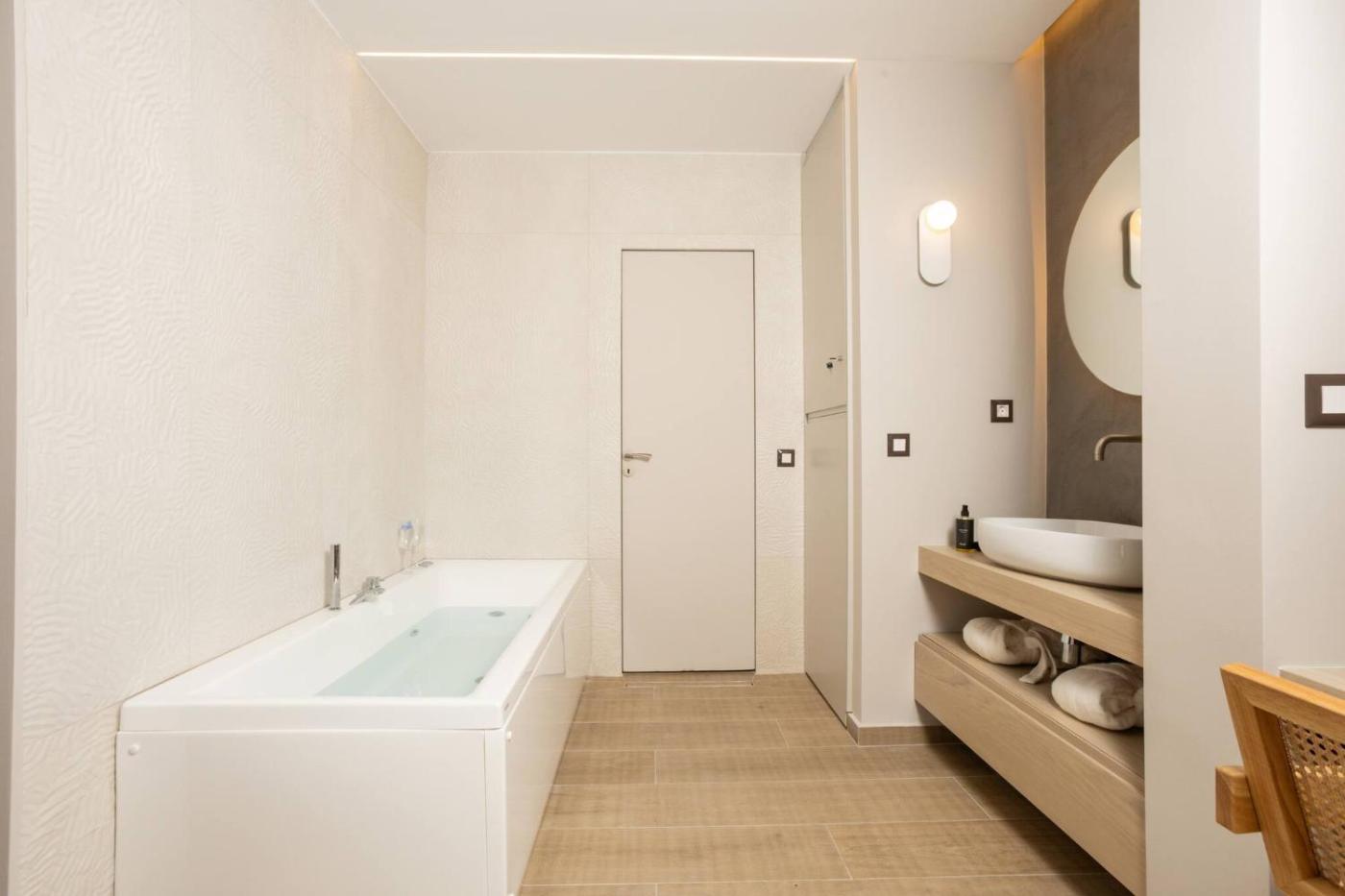 One-Bedroom Apartment. This air-conditioned apartment includes 1 living room, 1 separate bedroom and 1 bathroom with a bath. The well-fitted kitchen has a stovetop, a refrigerator, a dishwasher and kitchenware. Boasting a balcony, this apartment also offers a washing machine, a tea and coffee maker and a TV. The unit has 1 bed.