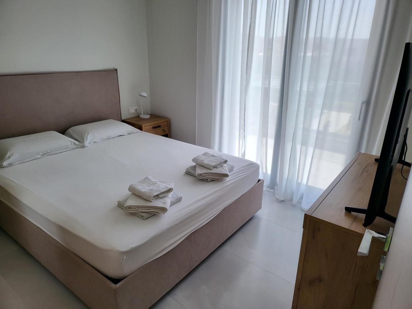 Three-Bedroom Villa. - One of the bedrooms has its own bathroom, terrace and a TV (street view). - The other two bedrooms share a bathroom and a terrace (pool view). All facilities in the complex can be used by guests of Olea Valley Villa T2 free of charge.