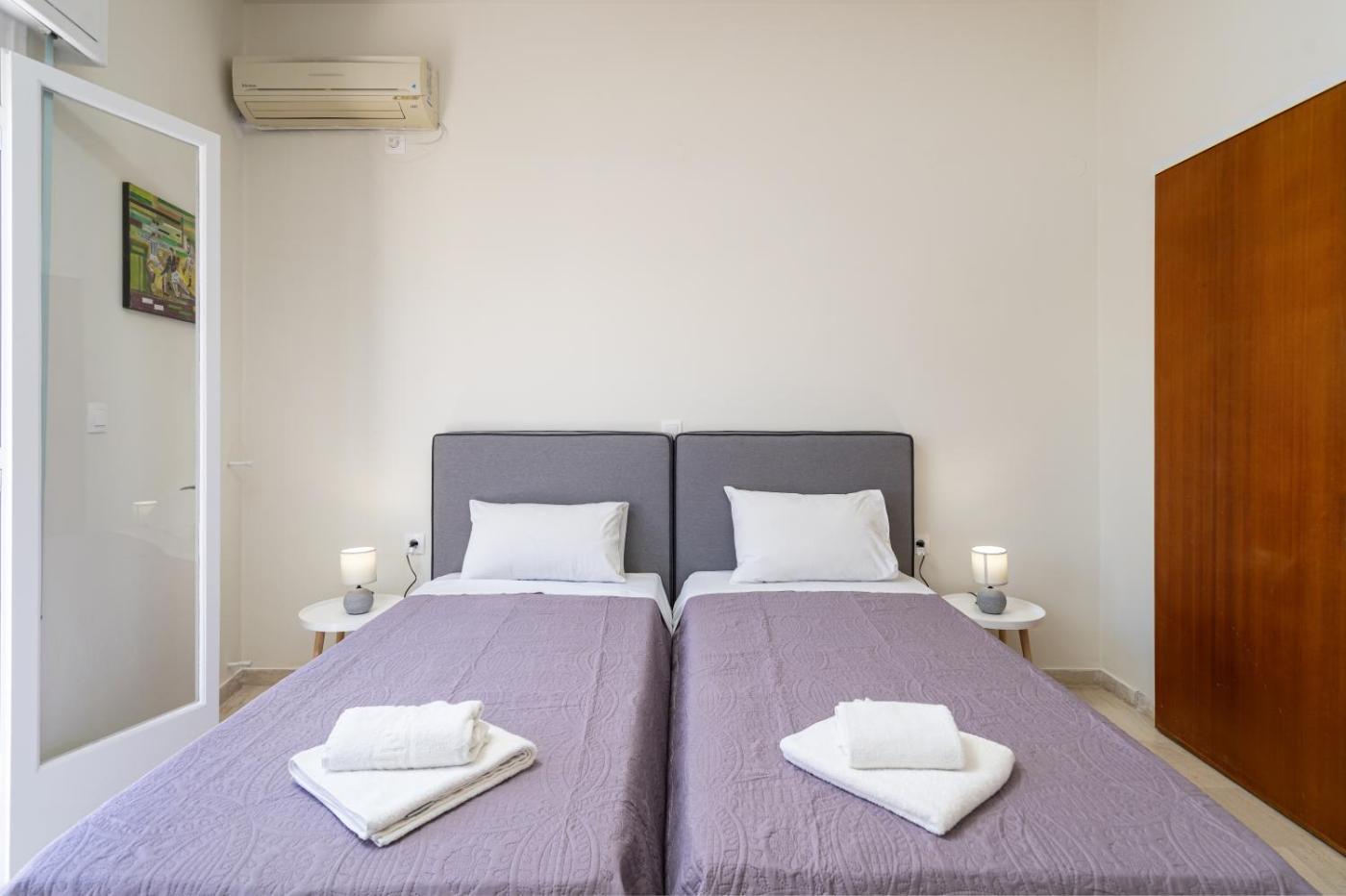 Two-Bedroom Apartment. Featuring a private entrance, this spacious apartment also comprises 2 separate bedrooms and 1 bathroom with a shower and a hairdryer. Meals can be prepared in the well-fitted kitchen, which comes with a stovetop, a refrigerator, kitchenware and an oven. The air-conditioned apartment provides a flat-screen TV, soundproof walls, a tea and coffee maker, a wardrobe as well as sea views. The unit offers 3 beds.