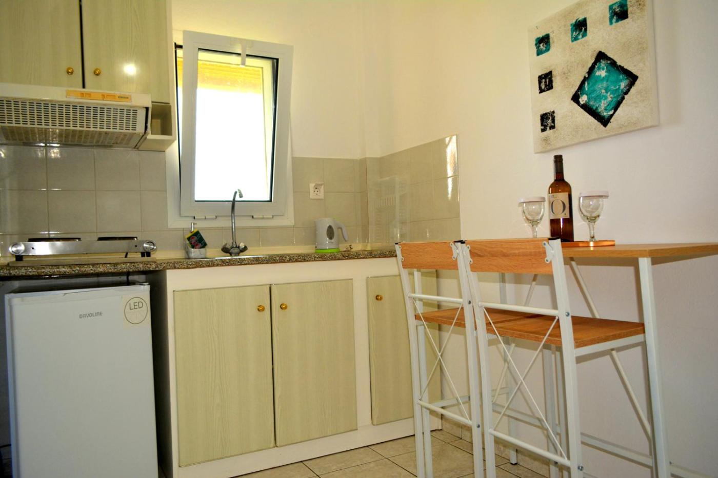 All air-conditioned studios and apartments open to a balcony or patio with garden views. Each has a kitchenette with a fridge and cooking rings. A TV and desk are available.