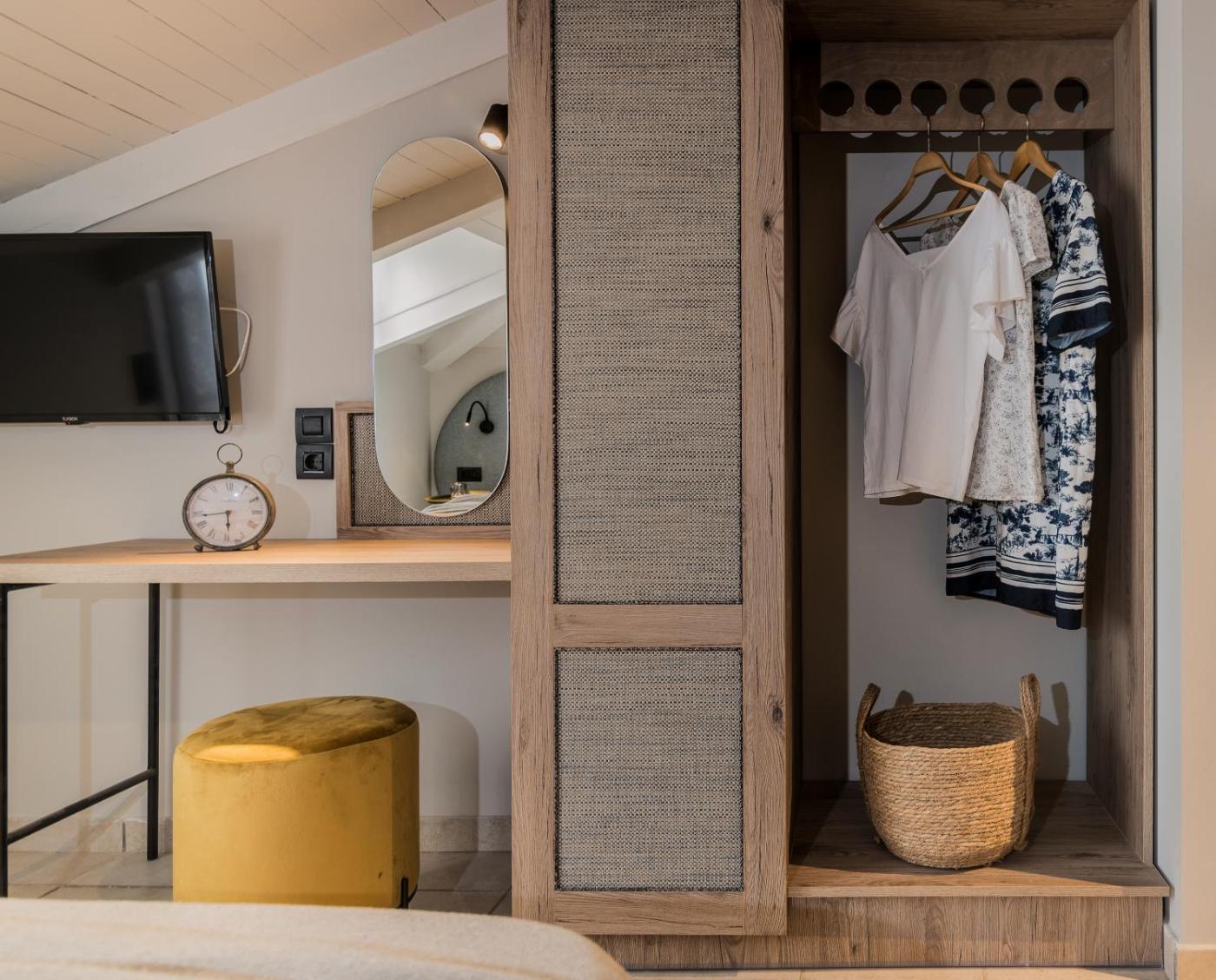 Deluxe Double or Twin Room. Guests can make meals in the kitchenette that has a stovetop, a refrigerator, kitchenware and a tea and coffee maker. The twindouble room features air conditioning, a private entrance, a terrace with garden views as well as a private bathroom boasting a shower. ;